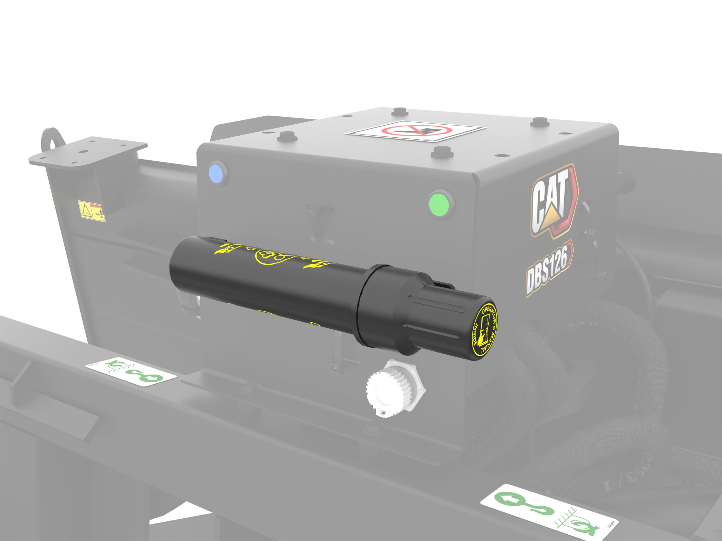 Two lights on the attachment are visible to the operator and indicate the mode of the machine/attachment combination.